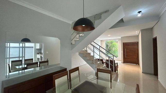 Casa moderna e recém-reformada, em terreno de 820 m² com 550 m² de área construída, localizada em posição privilegiada com fundos voltados para área de reserva. Conta com 3 suítes amplas, além de 1 suíte na garagem, pé-direito alto e som ambiente em todos os cômodos. Área de lazer completa com piscina aquecida, borda infinita e hidromassagem. Imóvel totalmente mobiliado (porteira fechada), com garagem coberta para até 6 veículos, ideal para quem busca conforto, sofisticação e privacidade.