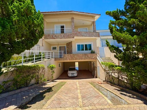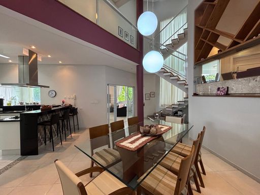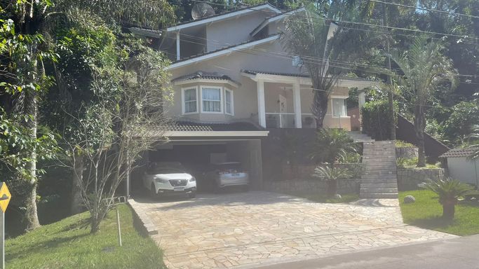 Residência completa e 100% mobiliada, com 3 suítes, incluindo uma máster com closet. Todos os ambientes são climatizados com ar-condicionado. No piso térreo, possui sala de jantar, sala de estar com lareira, sala de TV privativa, cozinha integrada, lavabo e brinquedoteca. A área externa conta com piscina ampla com vista para a serra, área de lazer com churrasqueira, escritório e lavanderia. Garagem coberta para 6 carros com portão automático, além de vagas descobertas para mais 3 veículos. Uma casa sofisticada, funcional e pronta para morar.