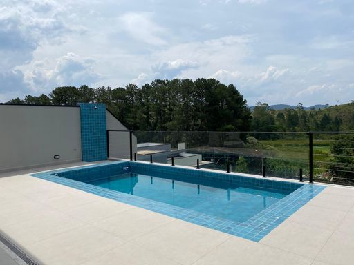 Esta casa surpreende pela amplitude, conforto e excelente padrão de acabamento. São 5 dormitórios, sendo 3 suítes, além de 6 banheiros, garantindo praticidade para toda a família. O imóvel conta com 2 vagas de garagem, sendo uma coberta e outra descoberta. Os acabamentos valorizam ainda mais os ambientes, com luminárias, persianas integradas, piso porcelanato, portas em madeira, sanca e teto rebaixado, proporcionando um visual moderno e sofisticado. A área social é um convite ao bem-estar, com ambientes integrados, iluminação em LED, móveis planejados e uma charmosa churrasqueira para receber amigos e familiares. A casa ainda possui piscina, escritório, área de serviço, lavabo, closet e um amplo quintal. Localizada em região estratégica, oferece fácil acesso à rodovia e está próxima de supermercado, facilitando a rotina diária. Para maior tranquilidade, o imóvel conta com cerca elétrica, circuito de câmeras, porteiro e segurança 24 horas.