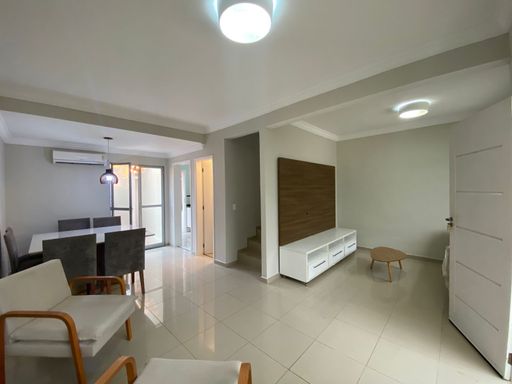Sobrado mobiliado com 3 dormitórios (sendo 1 suíte), perfeito para quem busca conforto, praticidade e um ambiente moderno. O imóvel conta com sala ampla com 3 ambientes, lavabo, cozinha completa, área de serviço, e ar-condicionado quente e frio. Possui garagem coberta para 2 carros.