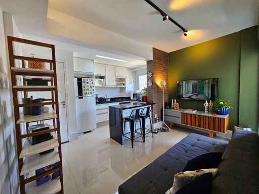 Apartamento à venda no Condomínio Home Flex Premium, em Socorro, Mogi das Cruzes. São 48m² muito bem distribuídos, com 1 dormitório, banheiro, sala de estar integrada, cozinha planejada, varanda e totalmente mobiliado.