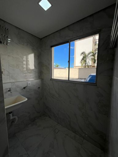 Área de serviço integrada, com espaço para máquina de lavar e tanque;