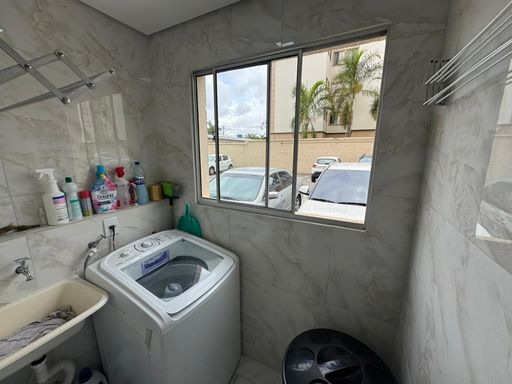 Área de serviço integrada, com espaço para máquina de lavar e tanque;