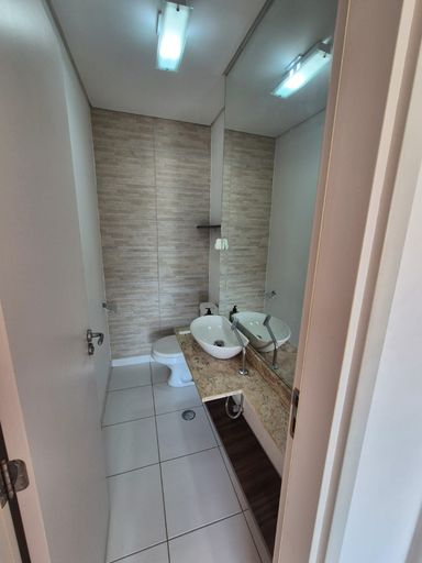 O imóvel possui cozinha com planejados e cooktop, lavanderia, lavabo e duas vagas de garagem. Disponível tanto para locação quanto para venda, é uma excelente opção para quem busca modernidade, funcionalidade e uma planta bem aproveitada.
