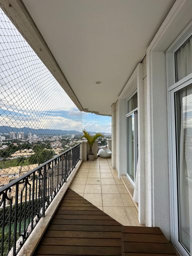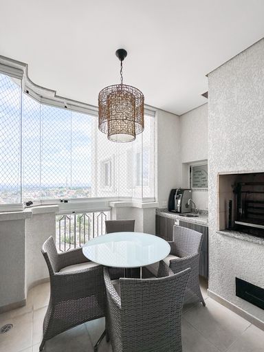 A área social é espaçosa e acolhedora, com uma ampla sala de estar, perfeita para receber convidados com charme e comodidade. O imóvel também conta com uma sala de jantar, uma sala de TV privativa, além de uma varanda gourmet generosa que se conecta entre os ambientes, revelando uma vista deslumbrante e permanente da cidade e das montanhas — um espetáculo diário, do nascer ao pôr do sol.