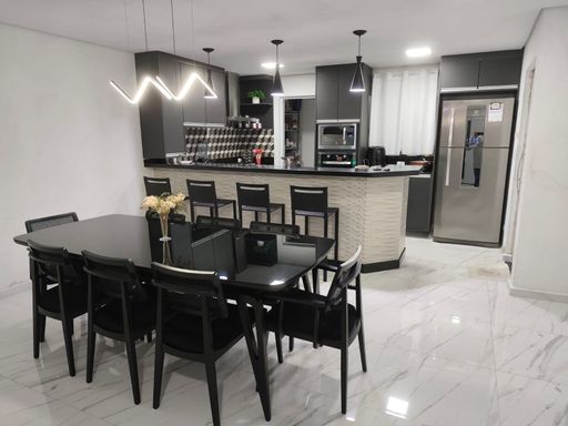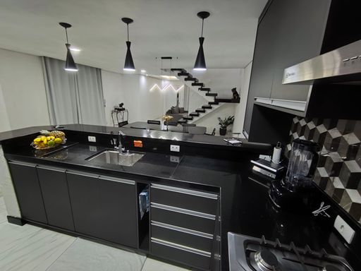Conta com 3 dormitórios (sendo 1 suíte com closet), 2 banheiros, 2 lavabos, sala de estar, sala de vídeo, sala de jantar, cozinha americana com despensa e área de serviço.