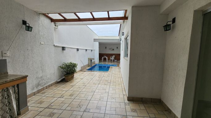Casa espaçosa com 260 m² de construção, atualmente em fase final de reforma (previsão de entrega em 15 dias, realizando pinturas e acabamentos). Possui 3 quartos, sendo 1 suíte com possibilidade de ampliação para 3 suítes. Conta com 3 banheiros, escritório com banheiro, sala ampla integrada à área gourmet, cozinha com sala de jantar, lavanderia, além de uma excelente área gourmet com piscina.