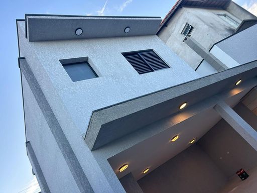 Conta ainda com quintal gramado , esquadrias pretas, quatro vagas descobertas, pintura externa projetada, cobertura em telha de zinco e infraestrutura para aquecimento a gás.