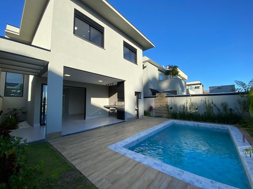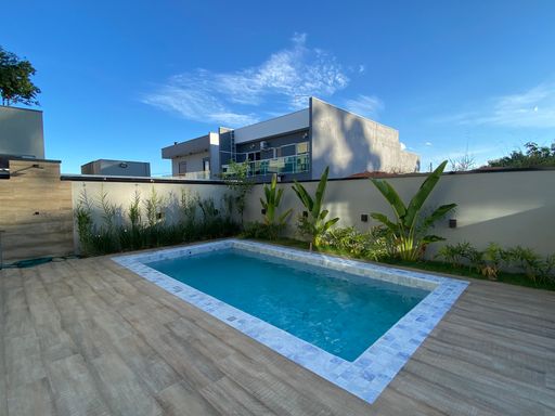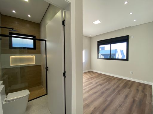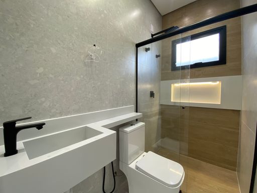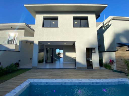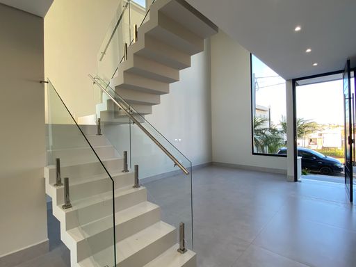 Sobrado de alto padrão com 191m² de construção em terreno de 250m², localizado no Condomínio Mosaico Essence. Possui design moderno, ambientes amplos e acabamentos sofisticados. Conta com salas integradas, espaço gourmet, piscina, três suítes (sendo uma master com closet), escritório e garagem para quatro carros. Acabamentos em Branco Prime, Preto Absoluto, piso porcelanato e vinílico, esquadrias pretas, portas automáticas e iluminação em LED. Condomínio com segurança 24h e lazer completo para toda a família.