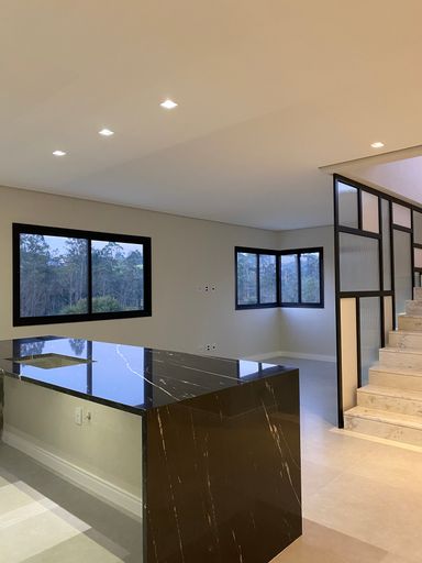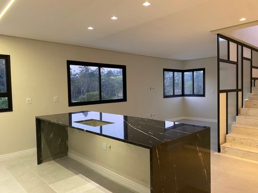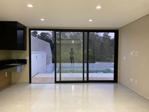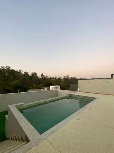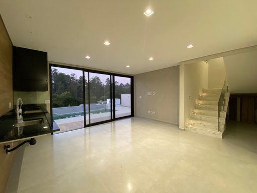 Sobrado de alto padrão com 280m² em terreno de 280m² no Condomínio Mosaico Essence. Possui três suítes (uma master com closet e varanda), salas amplas, cozinha integrada, salão de festas de 54m², espaço gourmet, quintal com piscina de borda infinita e vista para área de reserva. Conta ainda com garagem para quatro carros, esquadrias automatizadas, infraestrutura para ar-condicionado e acabamento sofisticado. Condomínio com lazer completo e segurança 24h.
