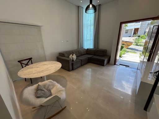 Linda casa à venda no condomínio Aruã Brisas, em Mogi das Cruzes. São 3 suítes, lavabo, área gourmet, jacuzzi e 220m² de área construída em um terreno de 370m². Imóvel semimobiliado em condomínio completo, ideal para quem busca conforto, lazer e segurança.