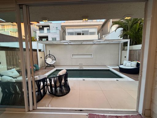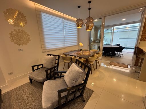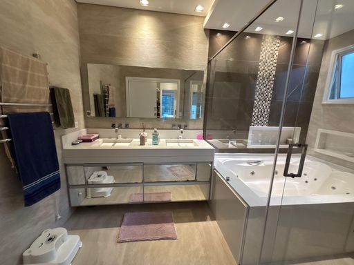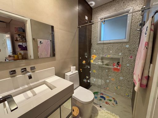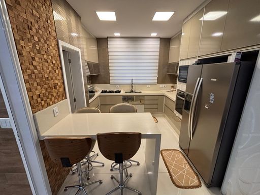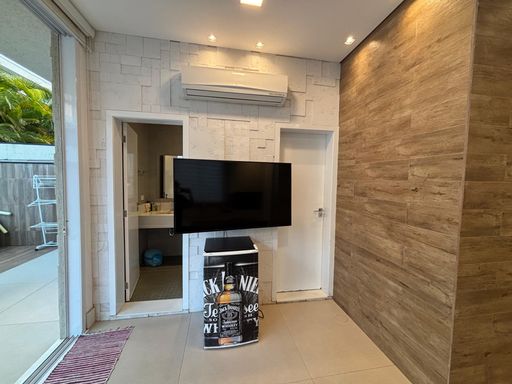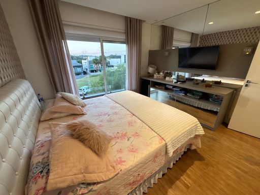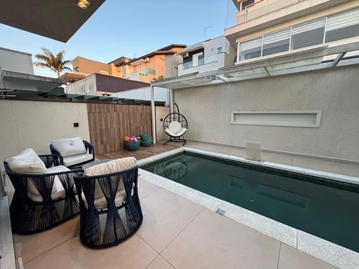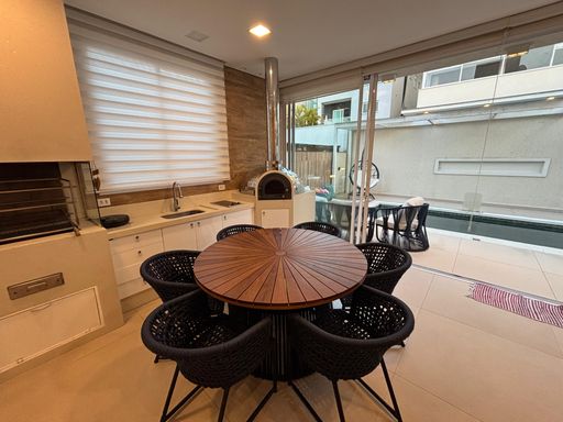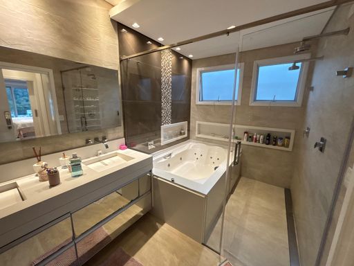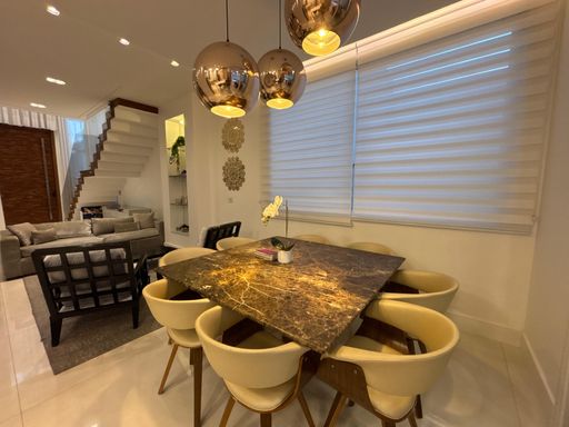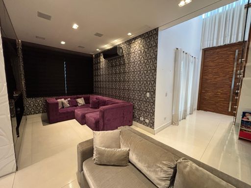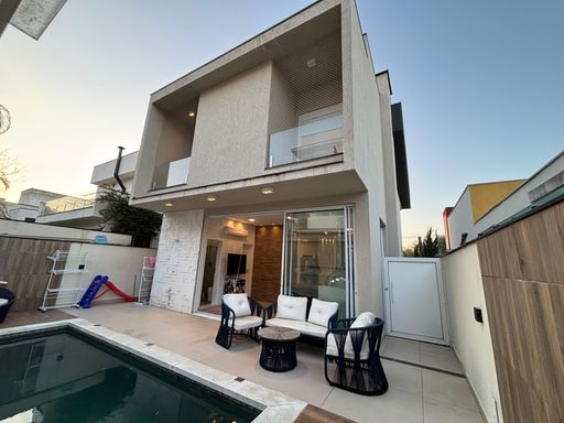 Casa mobiliada no Condomínio Aruã Brisas, com 300m² de terreno e 252m² de área construída. São 3 suítes com ar-condicionado e armários, total de 5 banheiros, lavabo, cozinha planejada com eletrodomésticos, lavanderia, além de piscina aquecida e espaço gourmet com churrasqueira. Garagem coberta para 2 carros.