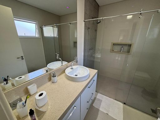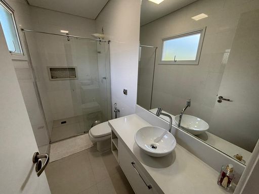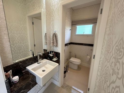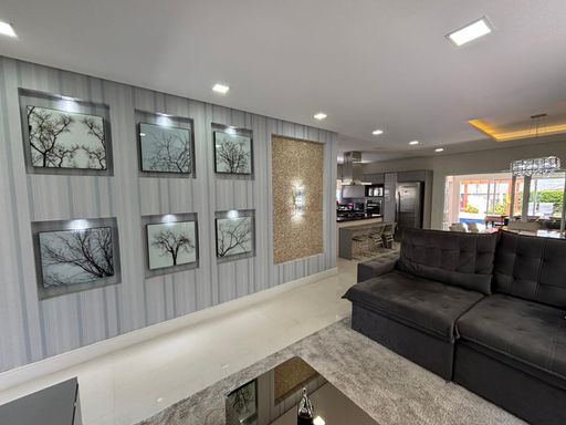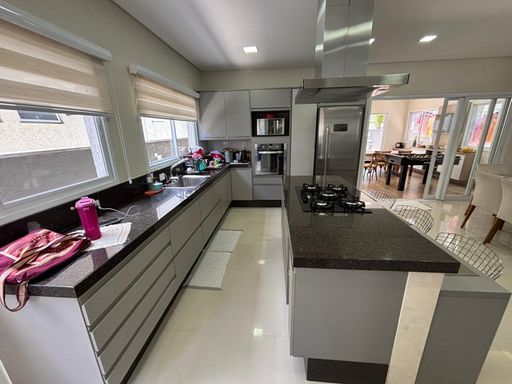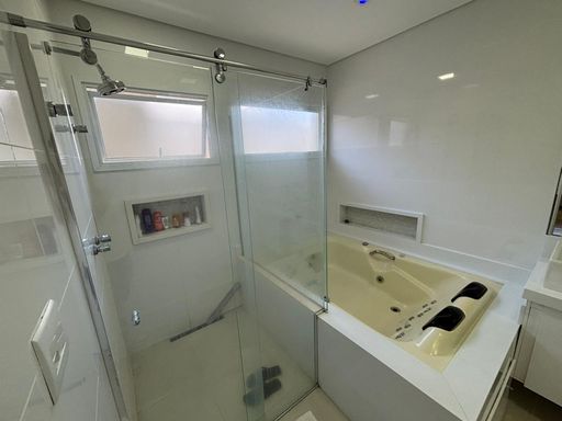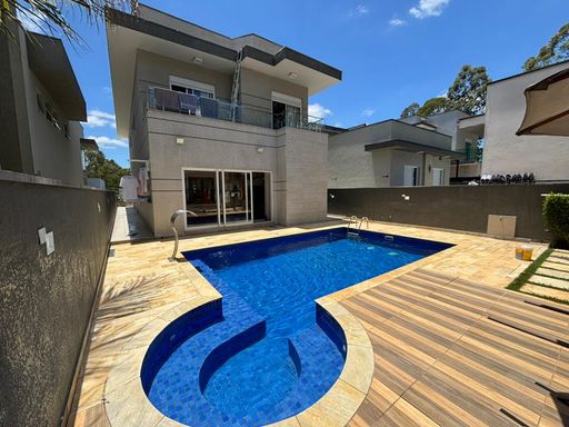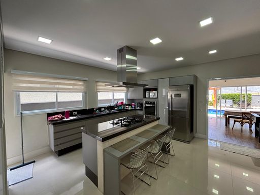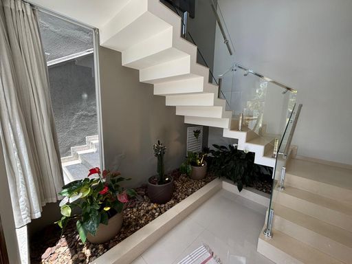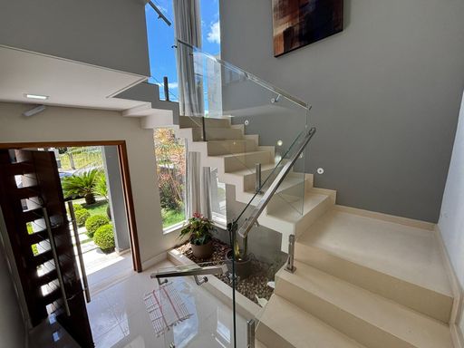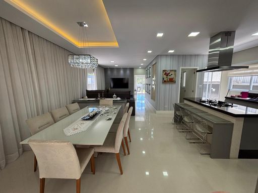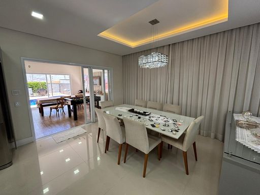 Casa de alto padrão com 290 m², oferecendo três suítes, sendo a suíte master equipada com closet e hidromassagem. O imóvel conta com quatro banheiros mais lavabo, sala ampla com dois ambientes, escritório, sala de jantar, cozinha americana com planejados, despensa e área de serviço.