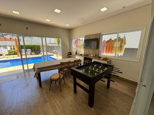 A área gourmet é completa, com churrasqueira, forno a lenha e excelente padrão de acabamento, integrada a uma linda piscina revestida em pastilhas com cascata e banheiro externo, proporcionando um ambiente perfeito para lazer, conforto e recepção. Um imóvel ideal para quem busca qualidade de vida e requinte em cada detalhe.