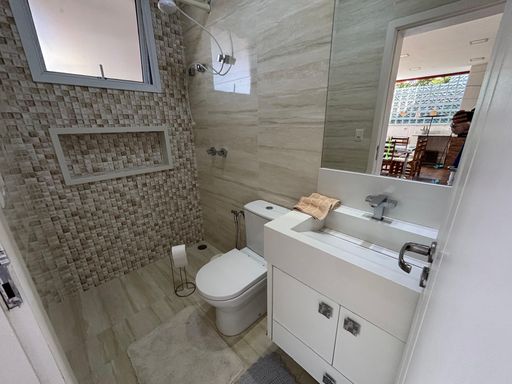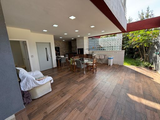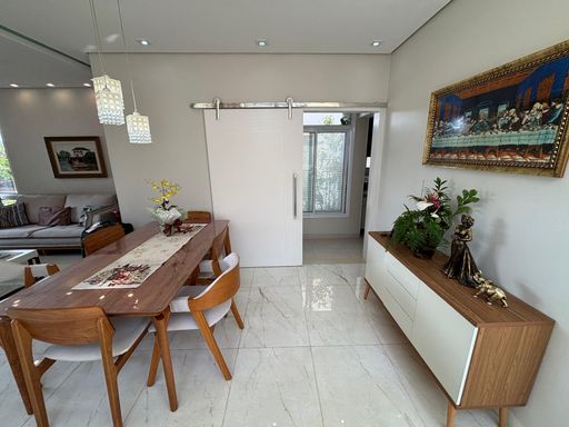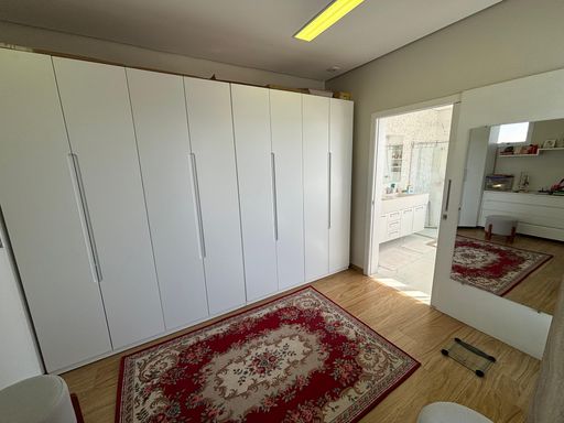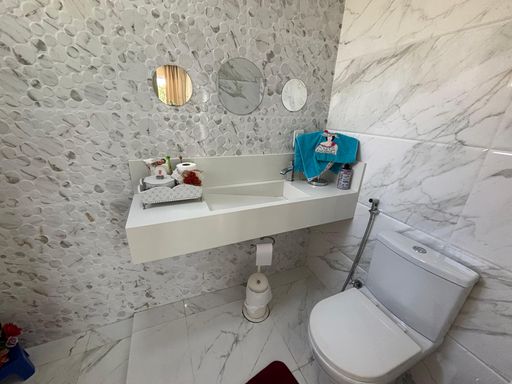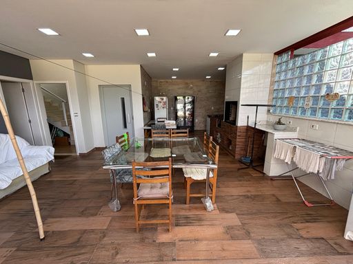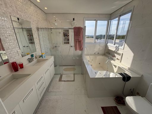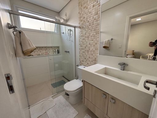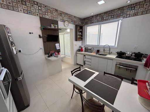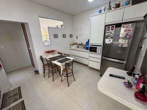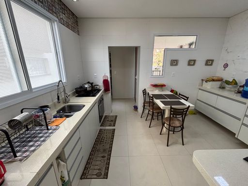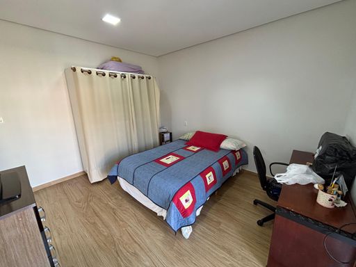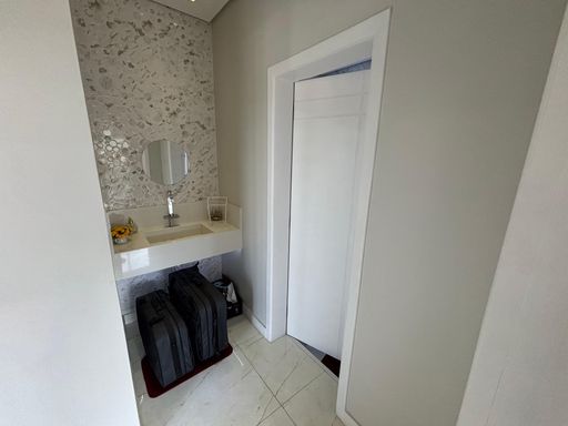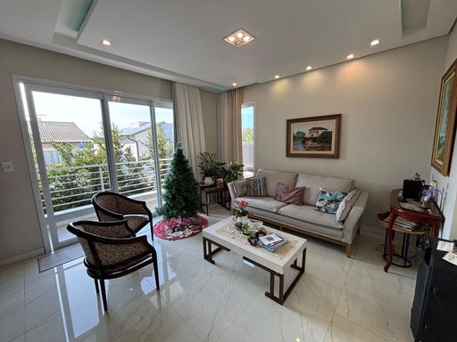 Imóvel com 3 suítes avarandadas, todas com persianas automatizadas, sala ampla integrada ao hall, cozinha planejada com acabamentos de alto padrão e mesa em mármore, além de lavabo e despensa. Possui garagem frontal para 4 veículos, outra garagem com portão eletrônico para até 3 carros que pode ser usada como salão de festas, churrasqueira, banheiro de apoio, lavanderia com depósito e quintal gramado. Aceita financiamento bancário e estuda permuta por imóvel menor no Complexo Aruã, preferencialmente casa térrea.