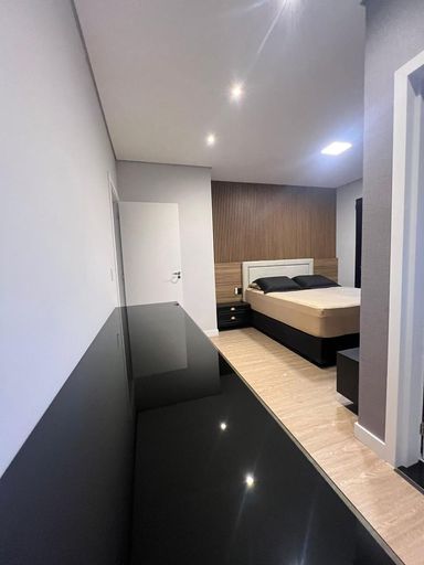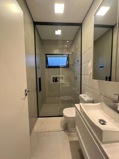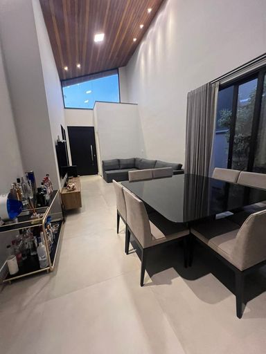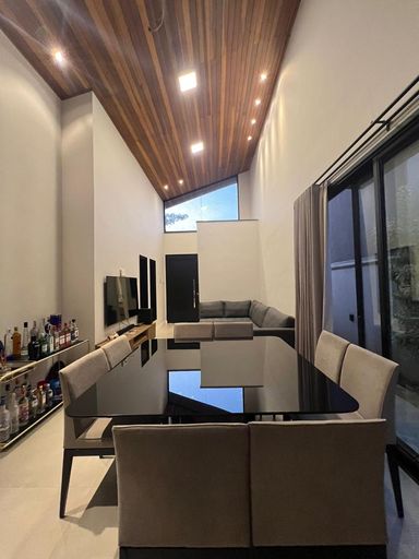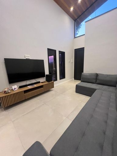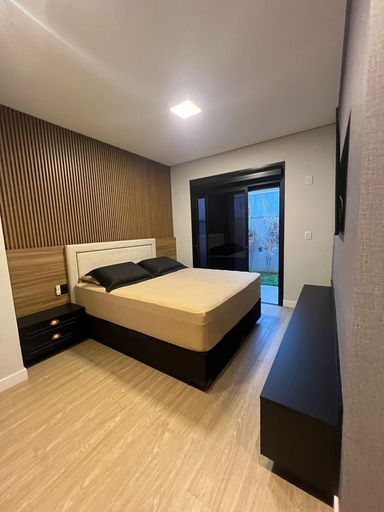 Casa térrea de 144 m² com 3 dormitórios (1 suíte), sala 2 ambientes, lavabo, cozinha planejada, área gourmet, lavanderia, banheiro de empregada e garagem para 4 carros. Imóvel mobiliado.