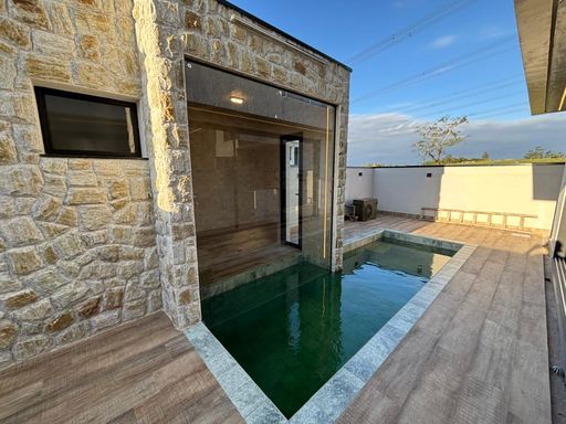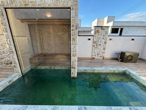 Com 300 m² de área construída, esta residência oferece 4 suítes (incluindo suíte master com closet), 4 vagas de garagem e ambientes amplos e integrados. Conta com sala de estar e jantar, cozinha funcional, além de piscina privativa, área gourmet e sauna.