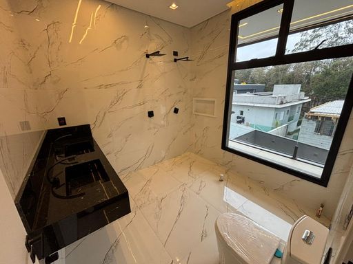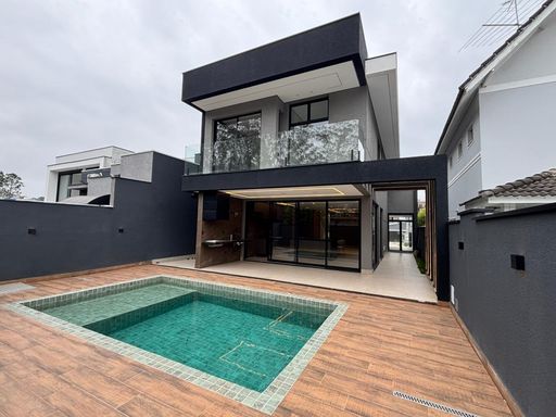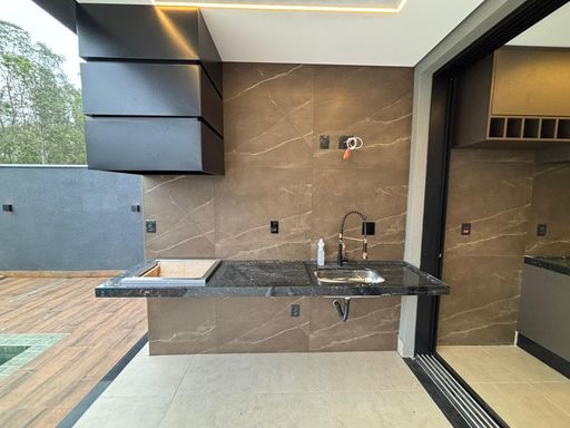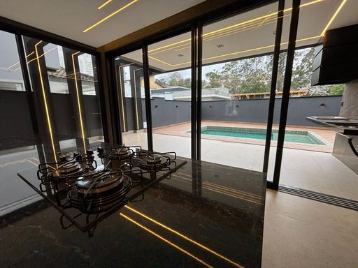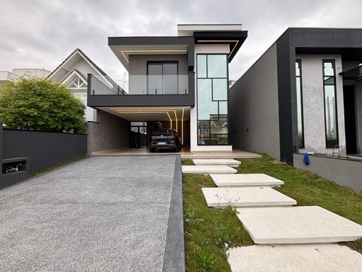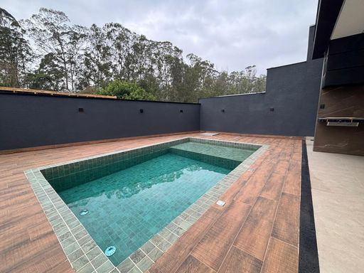 Ampla casa no Aruã com 4 suítes, sala para dois ambientes, cozinha planejada e quintal com área gourmet. Condomínio fechado com segurança 24h e excelente localização, próxima à natureza e com fácil acesso à rodovia.