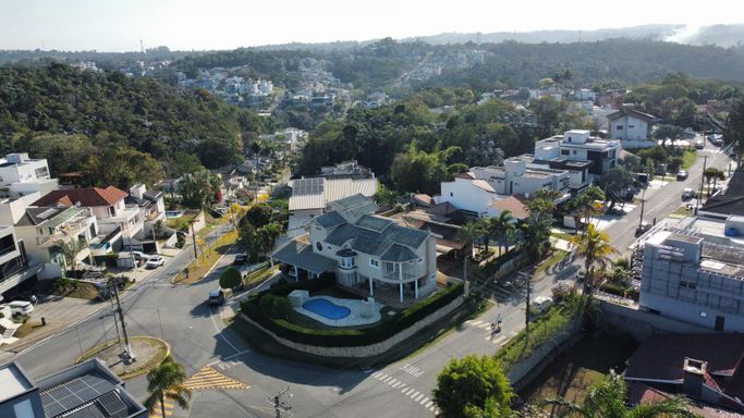 O condomínio oferece lazer completo com quadras, academia, trilha ecológica, lago, cachoeira, parques e segurança 24 horas.