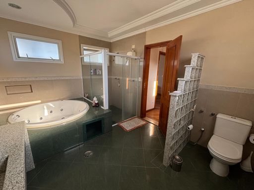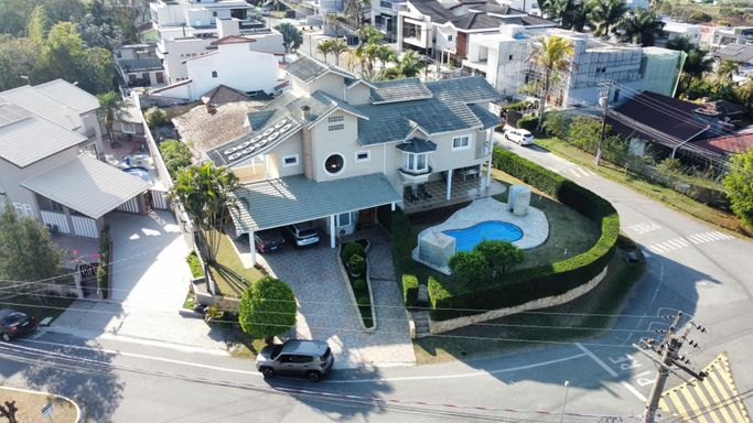 Casa de alto padrão no Condomínio Ecopark, com 655m² de terreno e 367m² de área construída. Possui 4 suítes (2 com closet e hidromassagem), total de 7 banheiros, lavabo, sala para 3 ambientes, escritório, cozinha planejada, lavanderia com banheiro e edícula.
