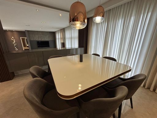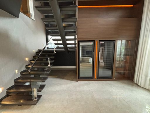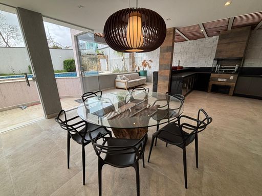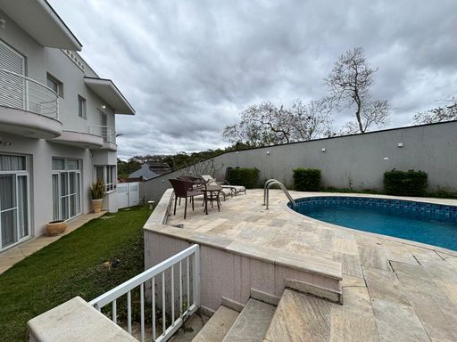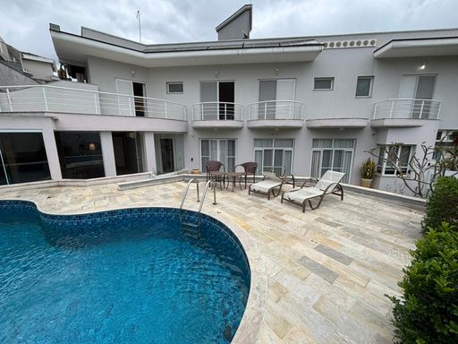 Magnífica residência no Condomínio Aruã com 5 suítes (incluindo master com varanda e vista para o lago), 3 vagas de garagem, área gourmet completa com churrasqueira e piscina aquecida. Ambientes amplos, acabamentos de alto padrão e terreno de 600m² em rua sem saída. Condomínio com lazer completo e segurança 24h. Aceita permuta na Riviera ou Tatuapé.