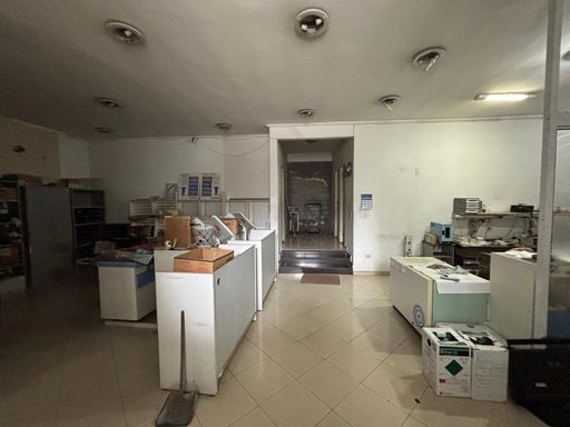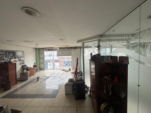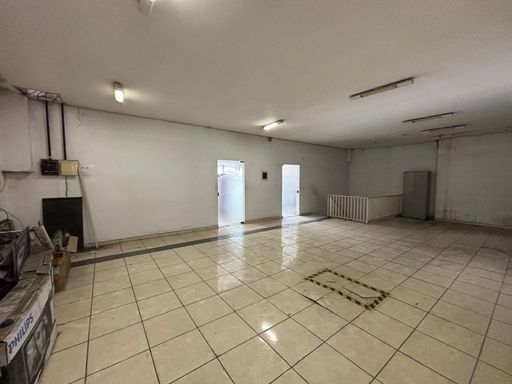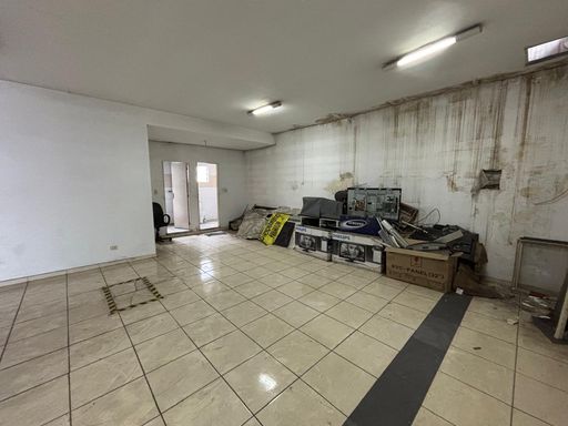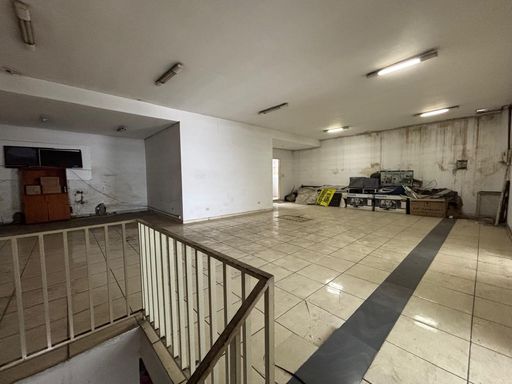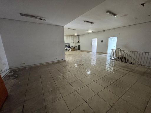 No térreo, conta com um salão amplo de 175m², copa, banheiros e vagas rotativas. O piso superior possui duas salas de 40m² cada, um salão de 100m², além de depósito e banheiros, totalizando aproximadamente 380m² de área útil.