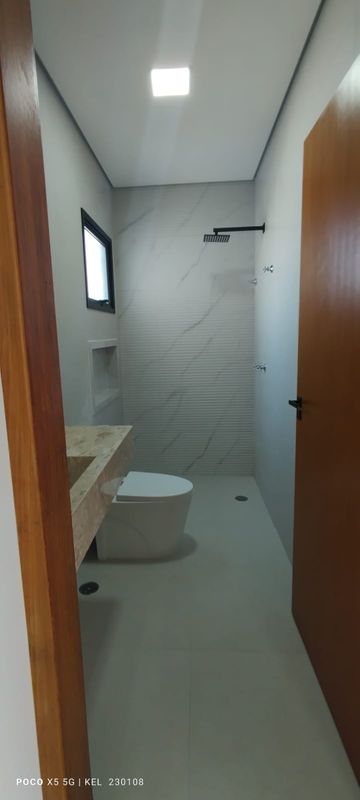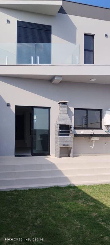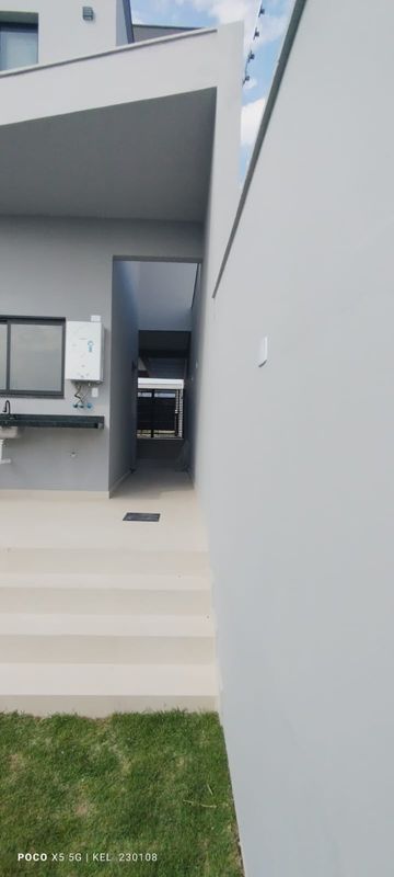 Casa com sala ampla e pé-direito elevado, cozinha com acesso direto à área da churrasqueira, despensa, área de serviço e depósito próximo à garagem. Quintal com paisagismo, infraestrutura para piscina ou jacuzzi, caixa d’água de 2.000 litros. Preparada para ar-condicionado nos quartos e sala, além de integração com sistema Alexa.